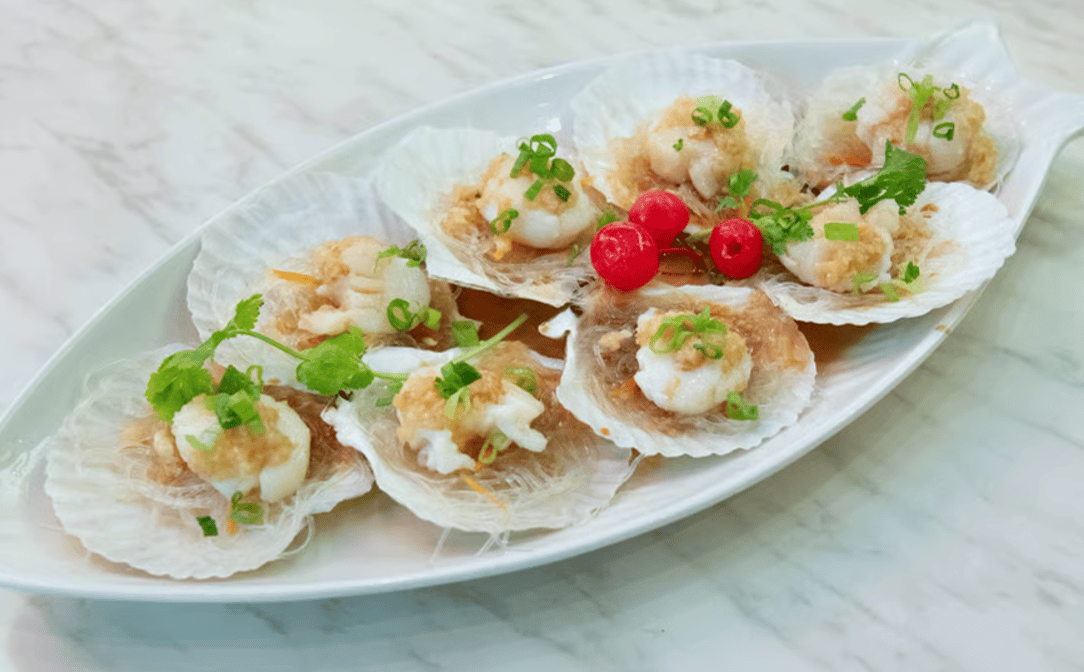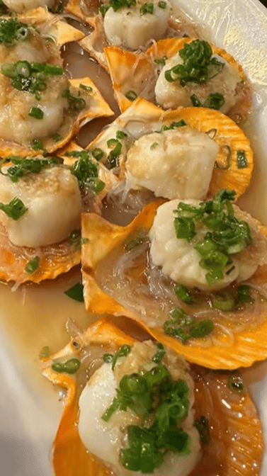 Steamed scallop with rice noodle: Delicate steamed scallops typically paired with soft rice noodles.
