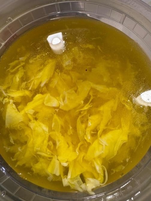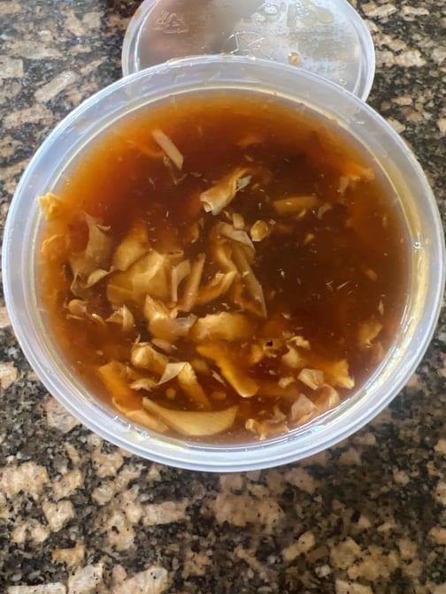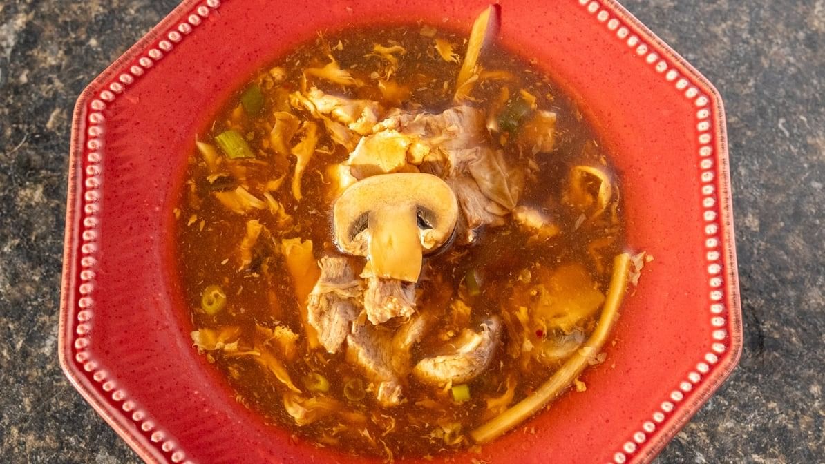 Mild. Savory, slightly sour & spicy chicken broth with tofu, bamboo shoots, mushroom, egg & chopped heart of cabbage.