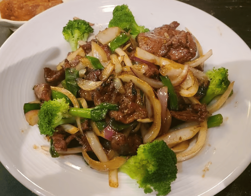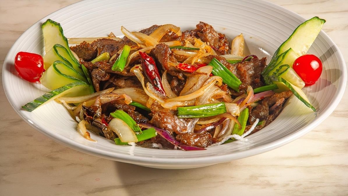 Marinated sliced beef stir-fry with spicy and flavorful house special Mongolian sauce.