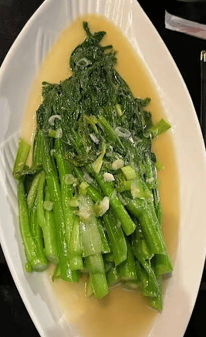 Garlic Choy Sum: Chinese greens with garlic. Choose from options like various fried or white rice, specialty rice and lo mein with chicken, pork, shrimp, beef, or vegetables.