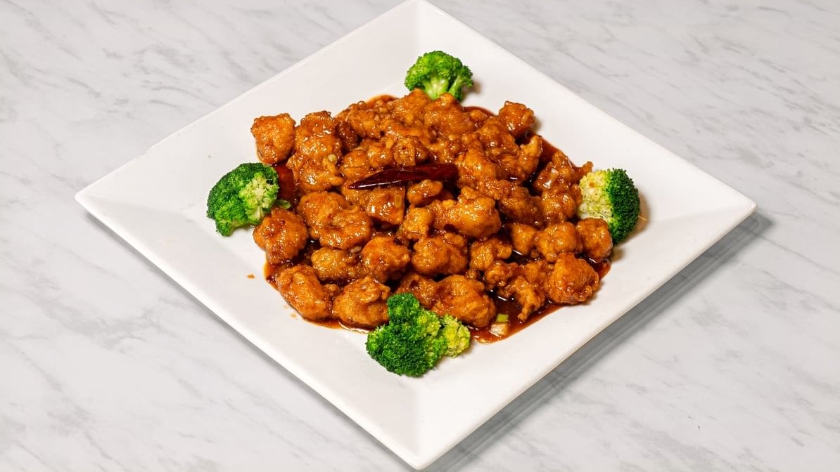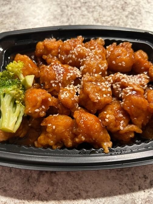 (White meats) diced chicken tossed in sweet & savory sesame sauce, and sprinkled with toasted sesame seeds.