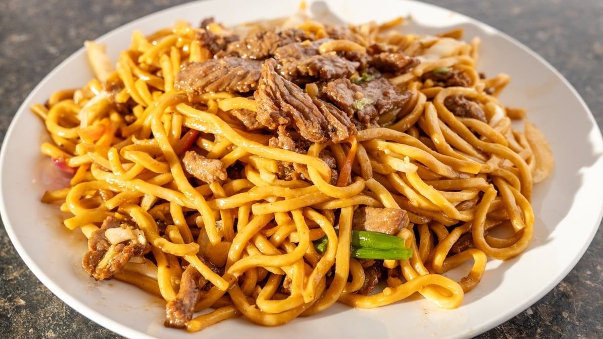 Savory beef lo mein: Stir-fried noodles with tender beef and fresh vegetables