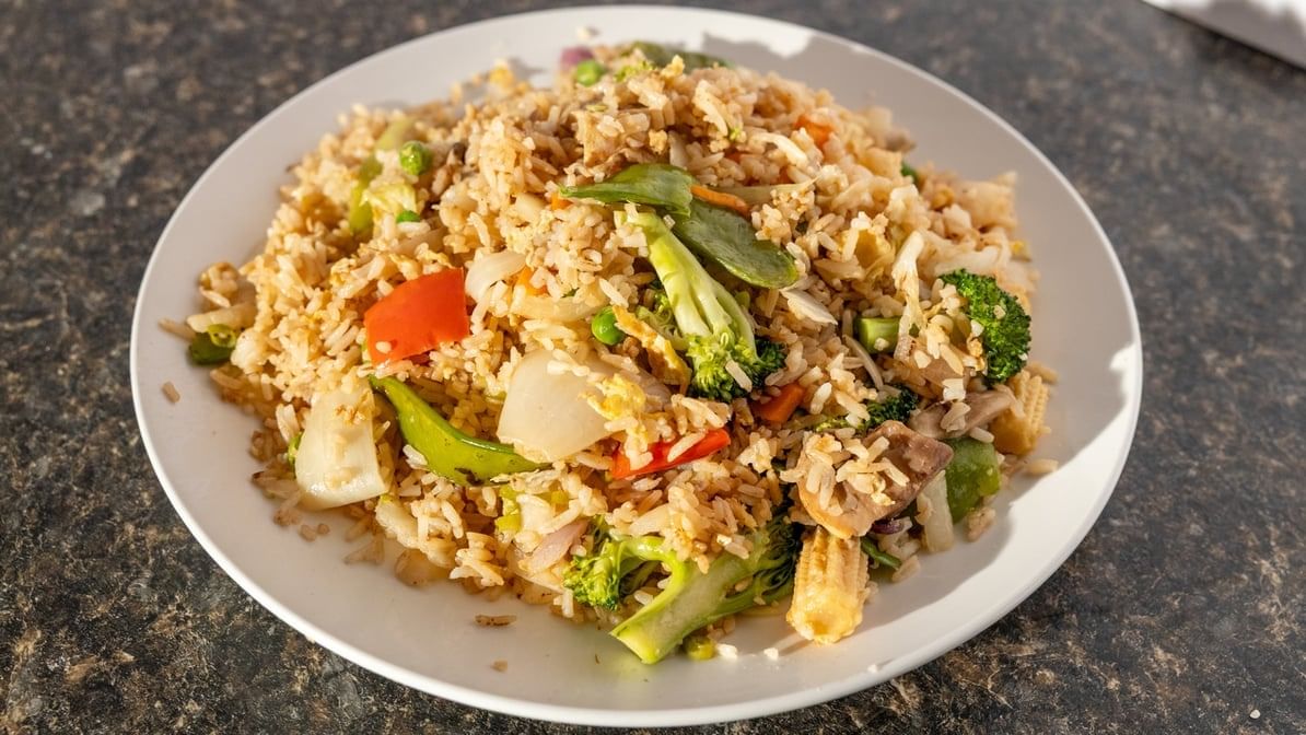 Savory fried rice tossed with fresh garden vegetables.