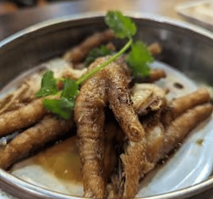 Marinated chicken feet, deep-fried to create a unique texture, then steamed to ensure tenderness.