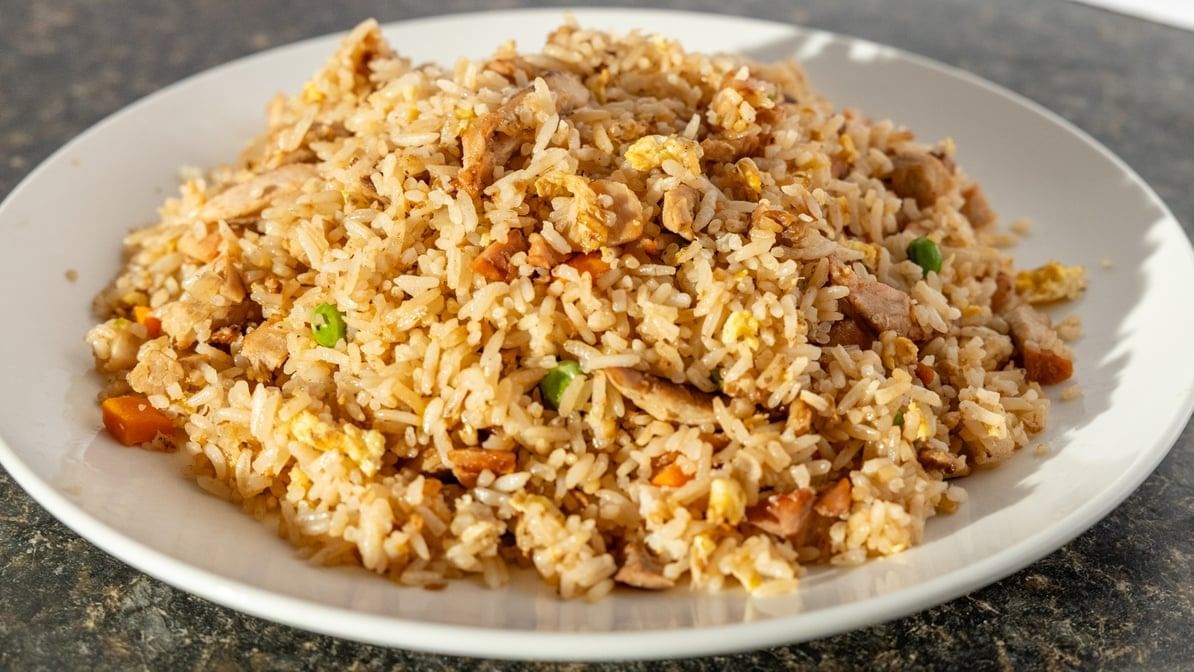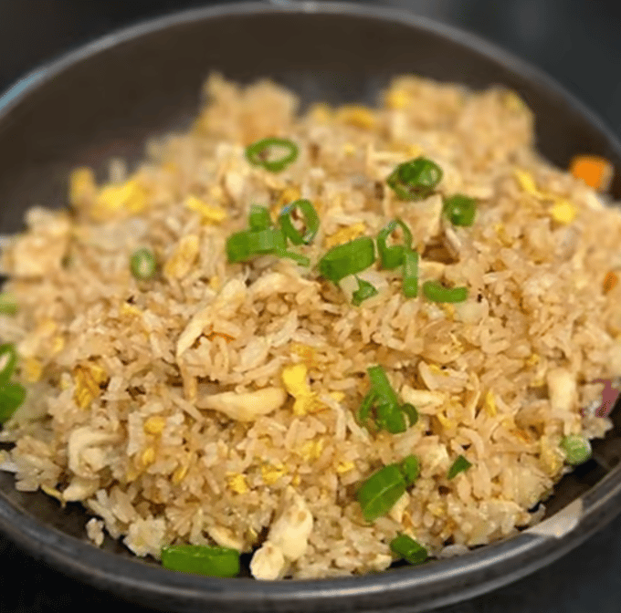 Classic chicken fried rice with tender pieces of chicken, veggies, and perfectly seasoned rice.