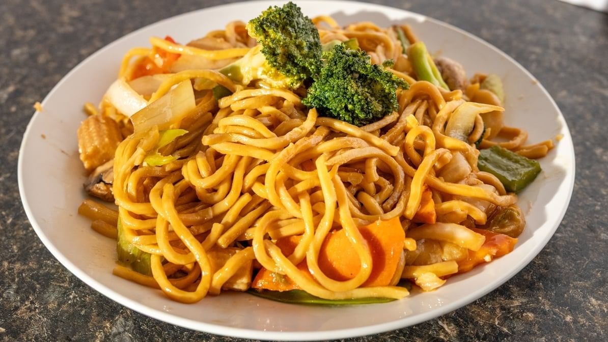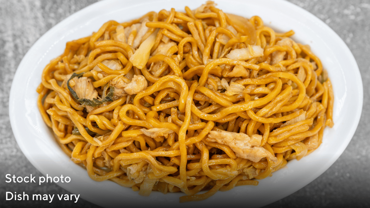 Savory chicken lo mein with tossed noodles and fresh vegetables